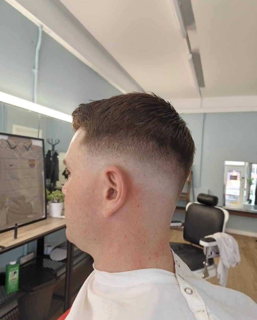 If you’re looking for a haircut that demands attention and makes a statement in the vibrant city of Glasgow, the high skin fade is the way to go. This style features a more dramatic transition, with the fade starting higher up on the sides and back of the head. The high skin fade creates a bold and eye-catching look, accentuating the longer hair on top for added impact. It’s a choice that perfectly aligns with Glasgow’s bold and daring sense of style..